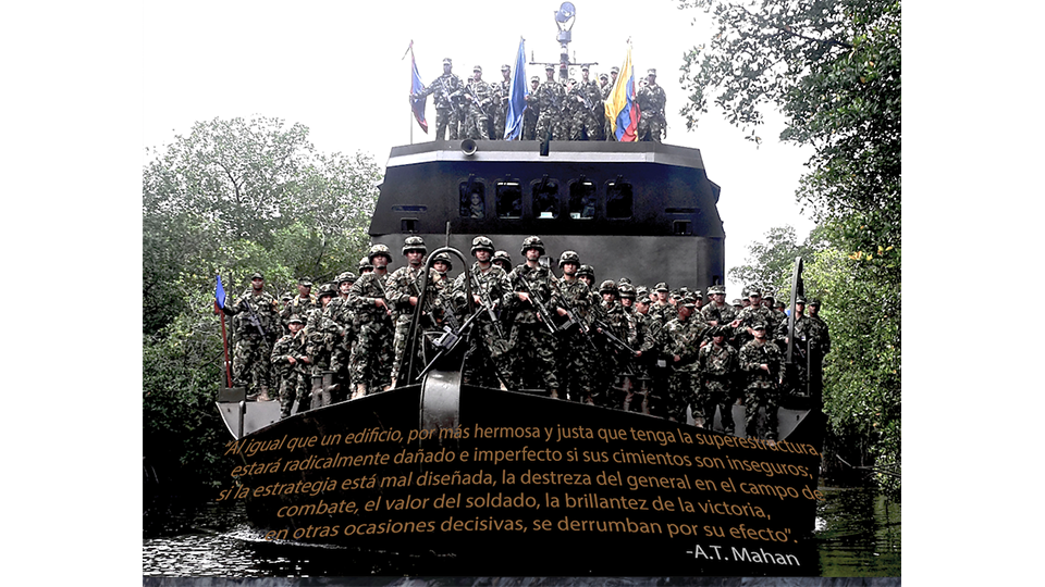 In 2014 the navy leadership consolidates an elite unit to reinforce the war against counterterrorism and counter illicit drug trafficking; the Colombian Marine Corps Riverine Battalion No.16. (wolfpack BFIM16). Implementing a strategy of excellence in operational development to contribute to the regional security of the Atrato, with an ideal combat structure, applying a persuasive leadership philosophy, executing a balanced operational cycle and with an effective organizational culture.